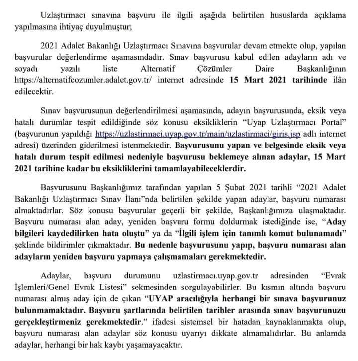 Uzlaştırmacı Sınavı Ek Duyurusu